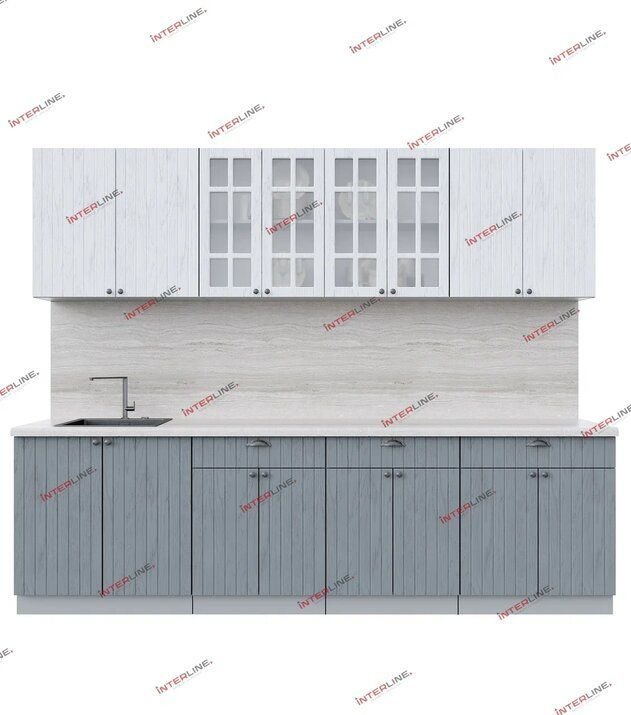 Готовая кухня Интерлиния Берес 2.7А (дуб полярный/дуб серый/травертин серый)