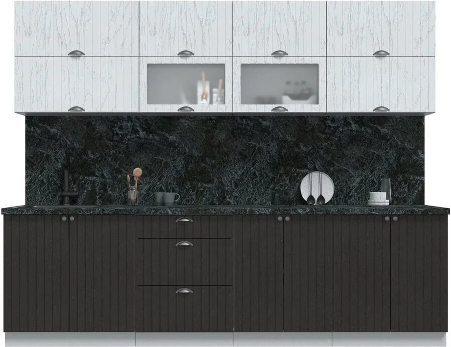 линейная, длина 270 см, ширина 60 см, каркас ЛДСП, фасад МДФ пленочный, установка мойки: врезная мойка, ширина шкафа под мойку 80 см