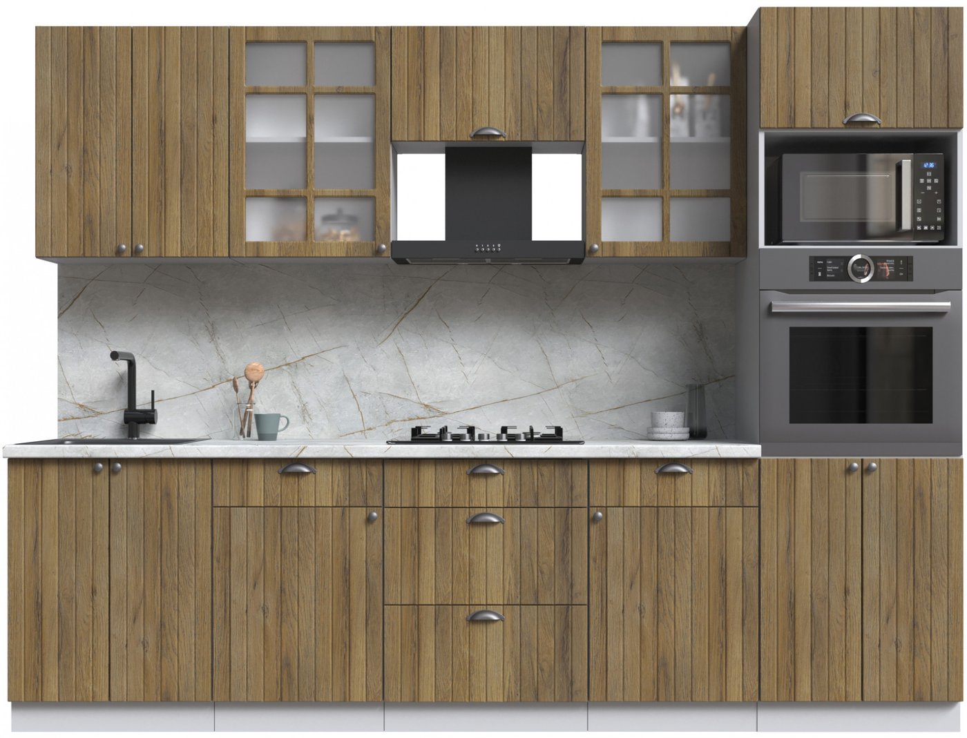 Готовая кухня Интерлиния Берес 2.8В (дуб вотан/дуб вотан/серый каспий)