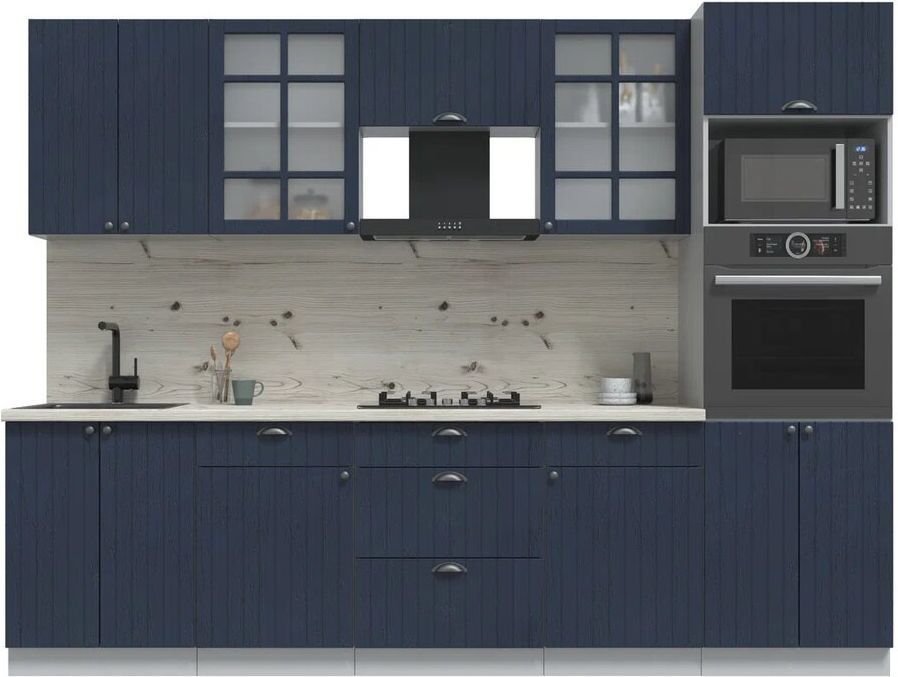 линейная, длина 280 см, ширина 60 см, каркас ЛДСП, фасад МДФ пленочный, установка мойки: врезная мойка, ширина шкафа под мойку 60 см