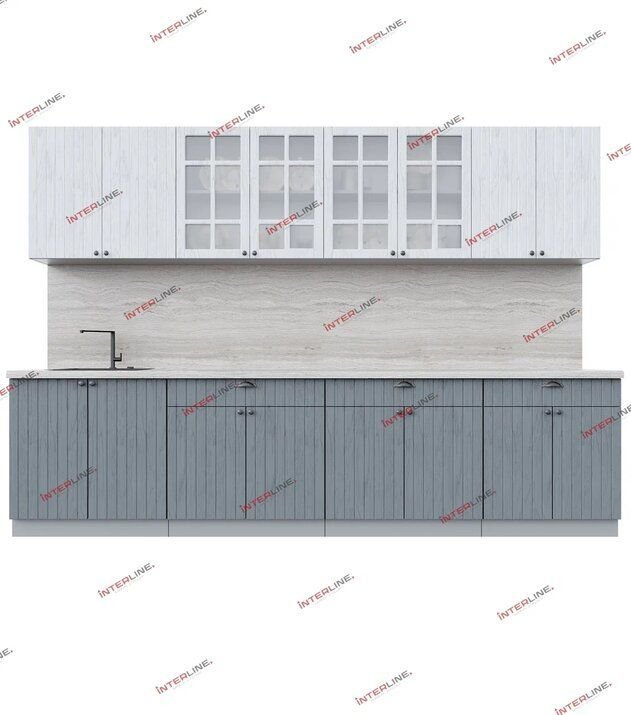 Готовая кухня Интерлиния Берес 3.1А (дуб полярный/дуб серый/травертин серый)