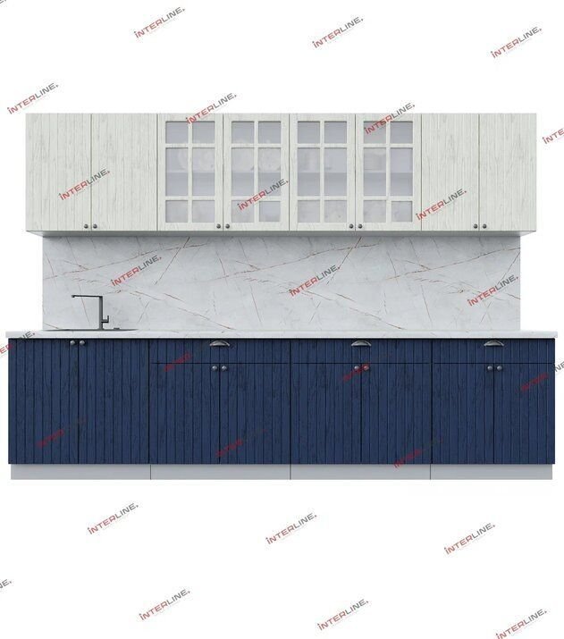 линейная, длина 310 см, ширина 60 см, каркас ЛДСП, фасад МДФ пленочный, установка мойки: врезная мойка, ширина шкафа под мойку 80 см
