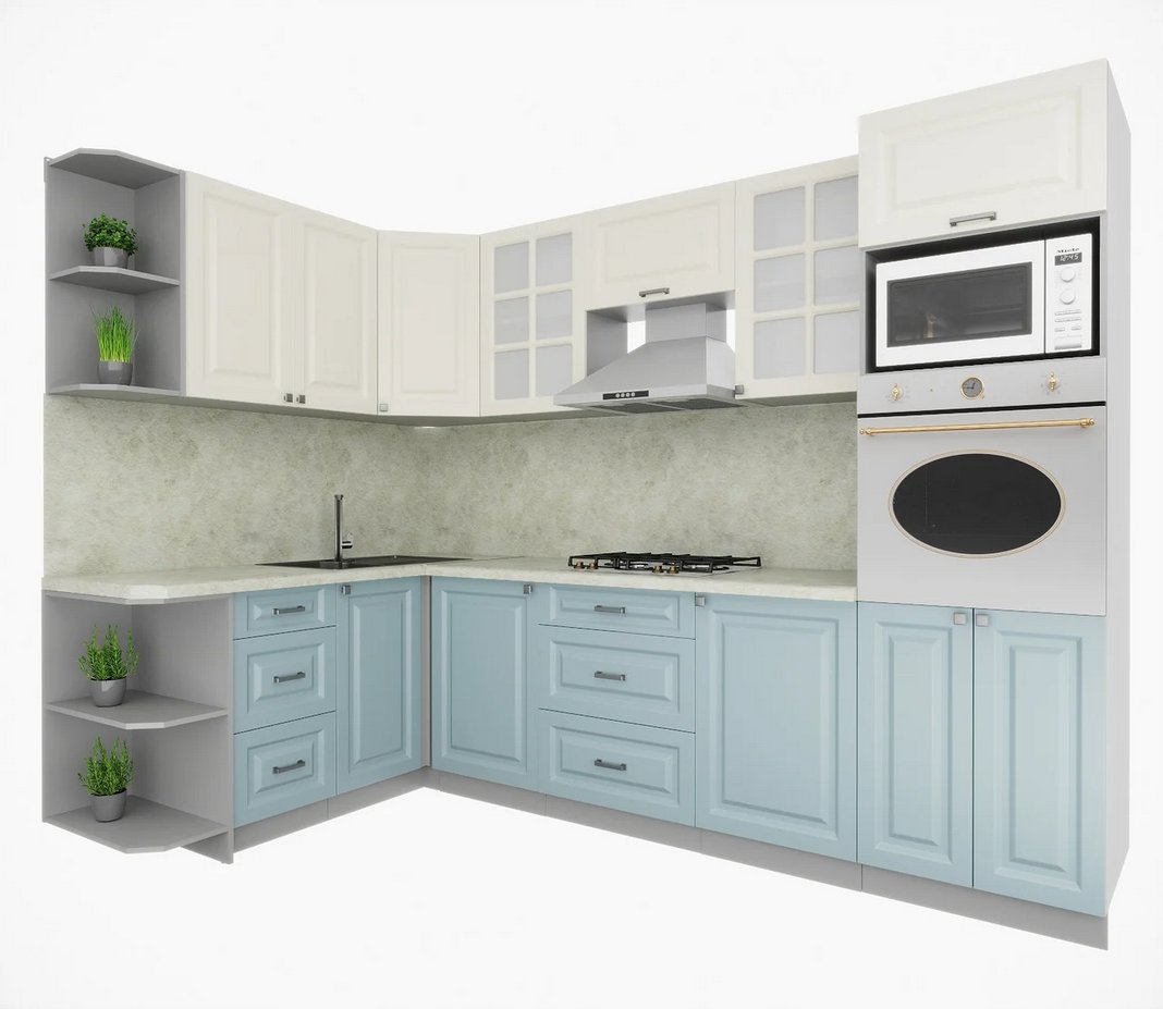 Готовая кухня Интерлиния Мила Деко 1.68x2.8 левая (слоновая кость-океан-опал светлый)