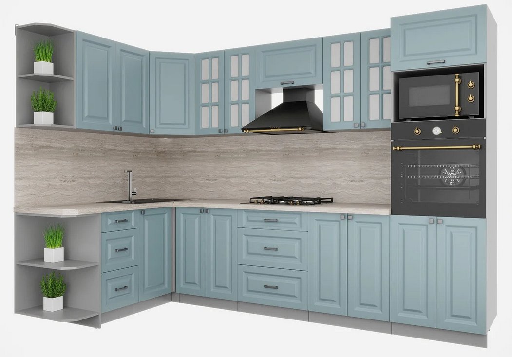 Готовая кухня Интерлиния Мила Деко 1.68x3.0 левая (океан-океан-травертин серый)