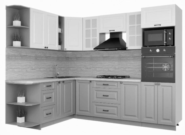 Готовая кухня Интерлиния Мила Деко 1.88x2.6 левая (слоновая кость-пепел-травертин серый)