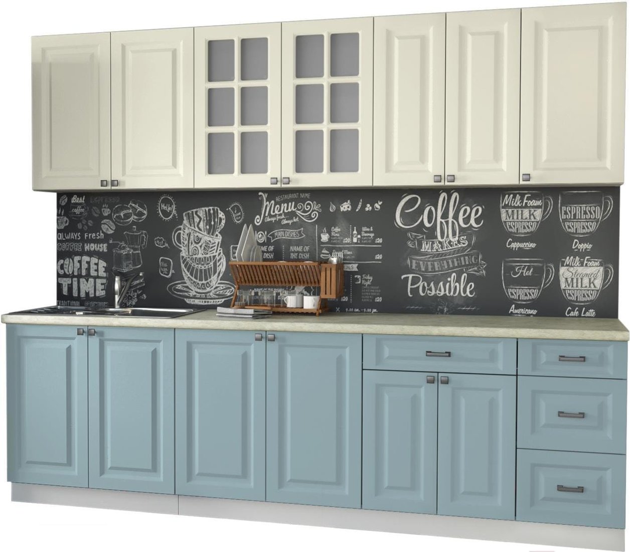 Готовая кухня Интерлиния Мила Деко 2.6 Б (слоновая кость/океан/опал светлый)