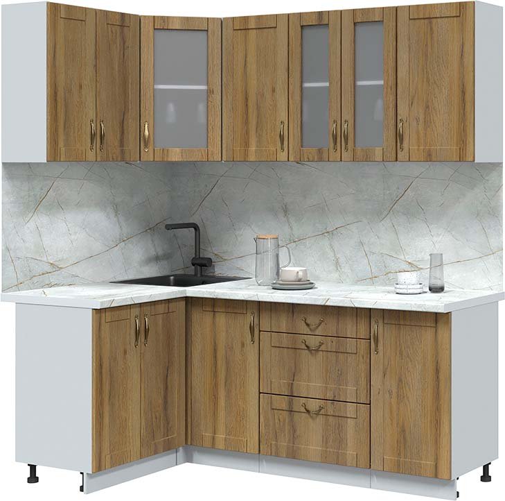 Готовая кухня Интерлиния Мила Крафт 1.2x2.0 (дуб вотан/дуб вотан/серый каспий)