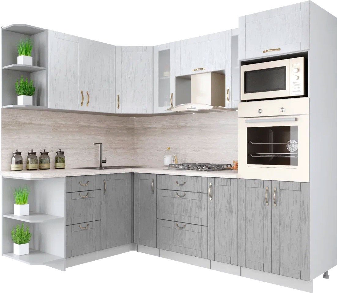 Готовая кухня Интерлиния Мила Крафт 1.68x2.8 левая (дуб серый/дуб полярный/травертин серый)