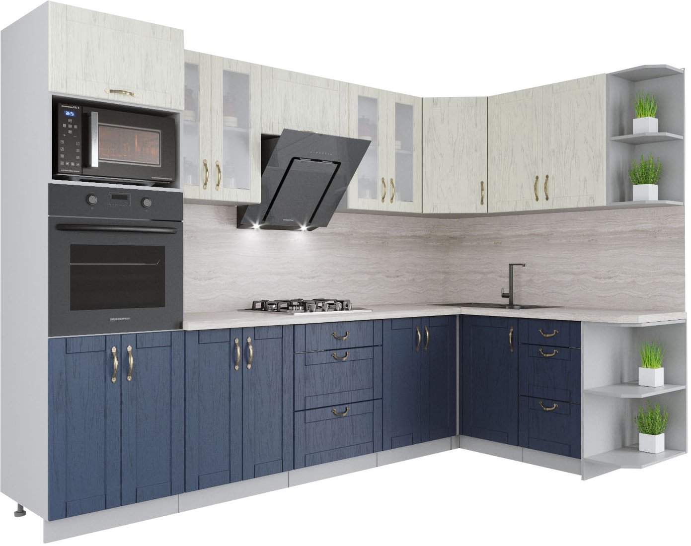 угловая, длина 300 см, ширина 168 см, каркас ЛДСП, фасад МДФ пленочный, установка мойки: врезная мойка, ширина шкафа под мойку 98 см