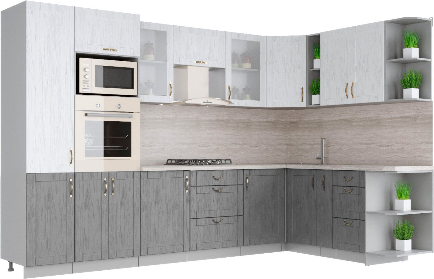 Готовая кухня Интерлиния Мила Крафт 1.88x3.2 правая (дуб серый/дуб полярный/травертин серый)