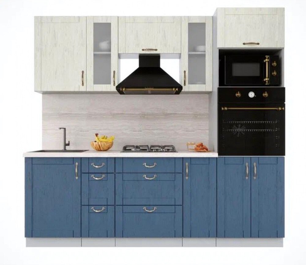линейная, длина 230 см, ширина 60 см, каркас ЛДСП, фасад МДФ пленочный, установка мойки: врезная мойка, ширина шкафа под мойку 50 см