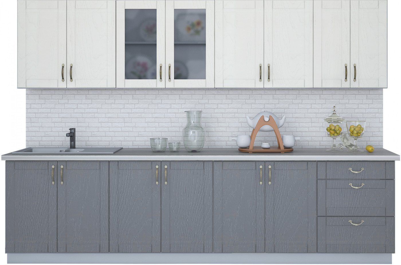 линейная, длина 300 см, ширина 60 см, каркас ЛДСП, фасад МДФ пленочный, установка мойки: врезная мойка, ширина шкафа под мойку 80 см