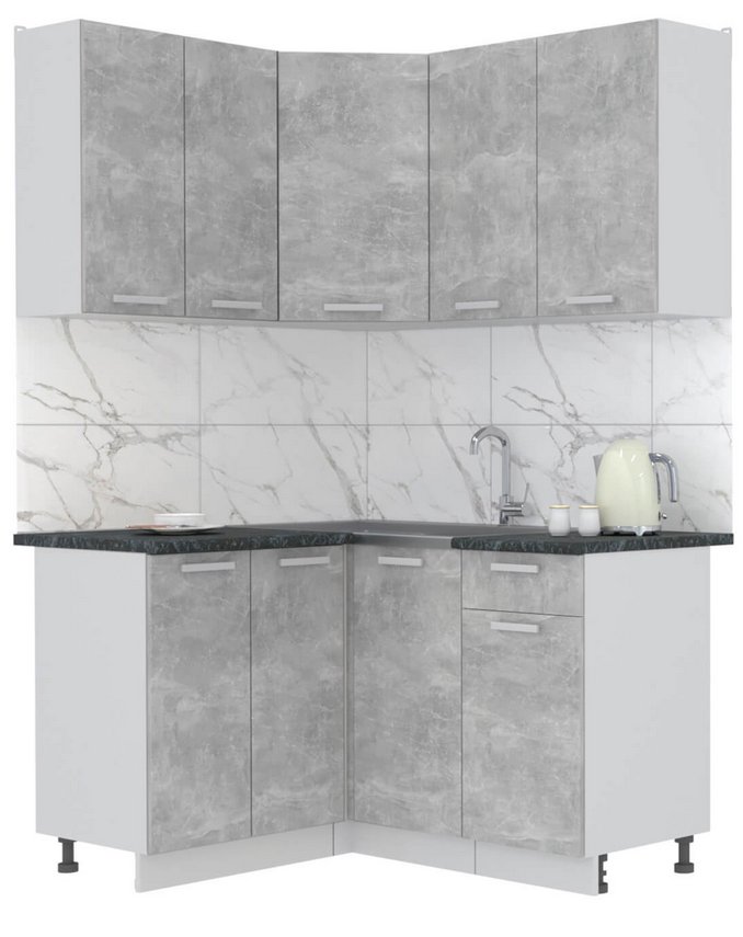 Готовая кухня Интерлиния Мила Лайт 1.2x1.4 (бетон-бетон-кастилло темный)