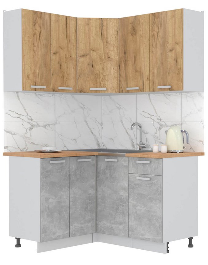 Готовая кухня Интерлиния Мила Лайт 1.2x1.4 (дуб золотой-бетон-дуб бунратти)