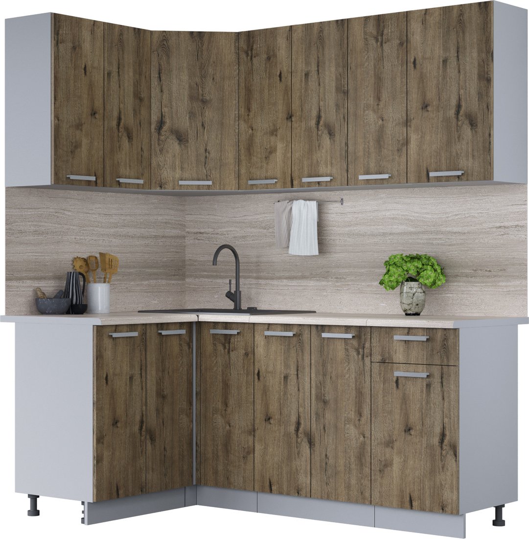 Готовая кухня Интерлиния Мила Лайт 1.2x1.9 (дуб веллингтон/дуб веллингтон/травертин серый)