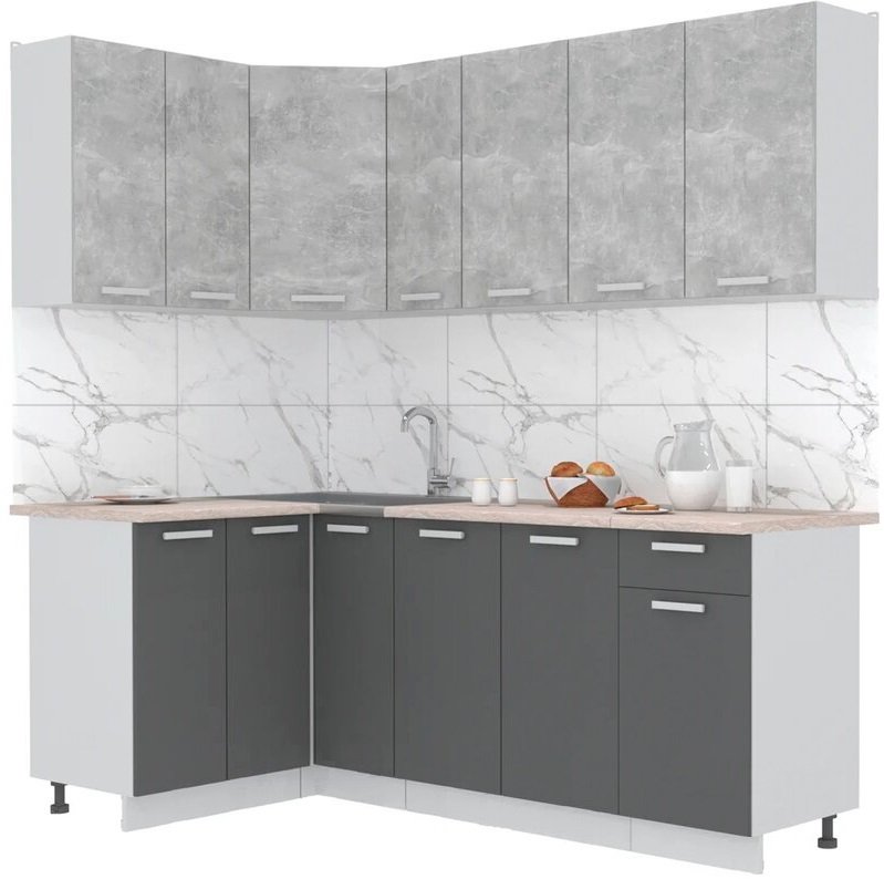 Готовая кухня Интерлиния Мила Лайт 1.2x2.1 (бетон-антрацит-травертин)
