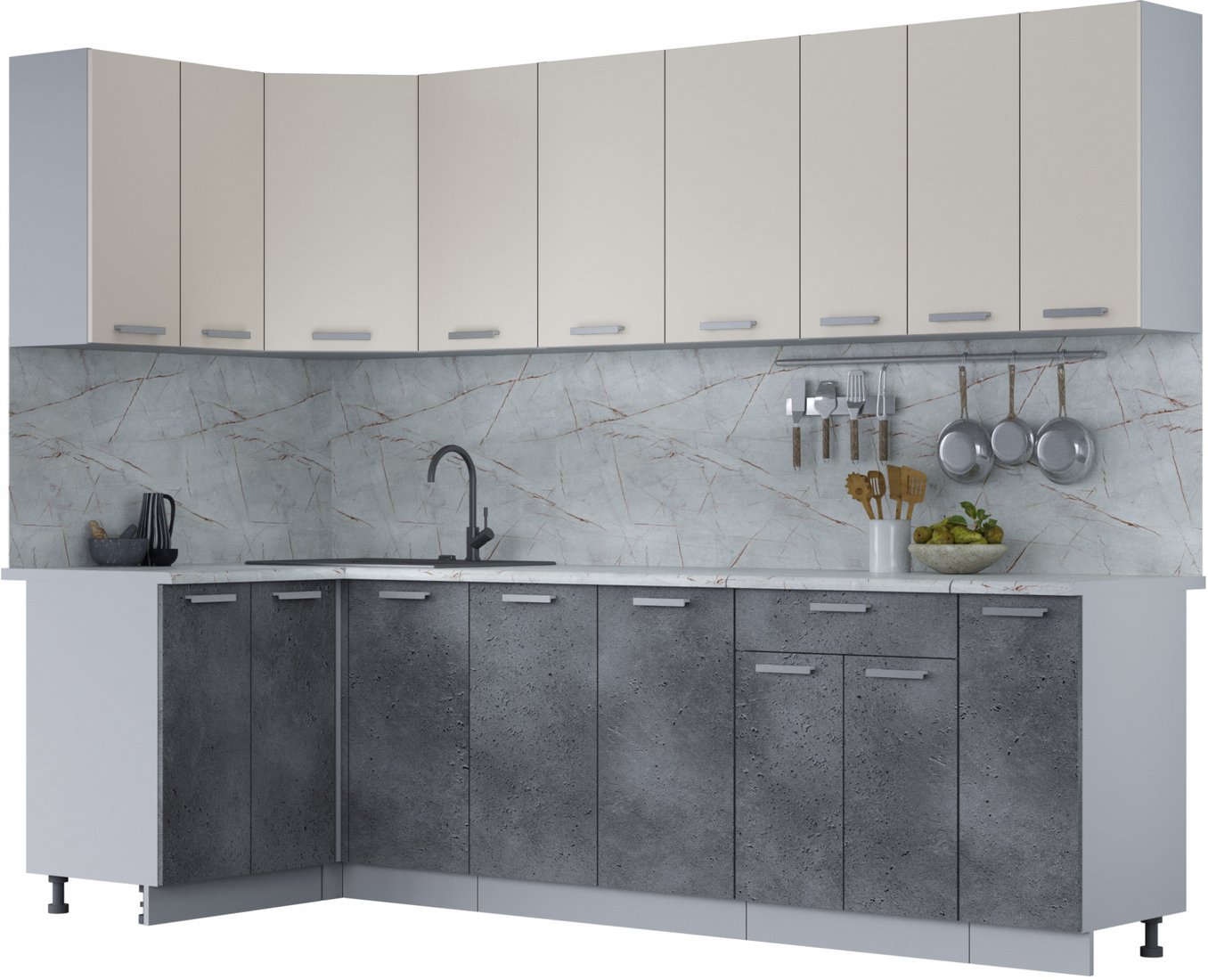 Готовая кухня Интерлиния Мила Лайт 1.2x2.7 (персидский жемчуг/бетон портленд/серый каспий)