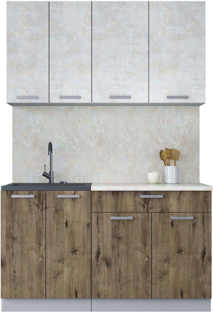 Готовая кухня Интерлиния Мила Лайт 1.4-60 (бетон лайт/дуб веллингтон/опал светлый)