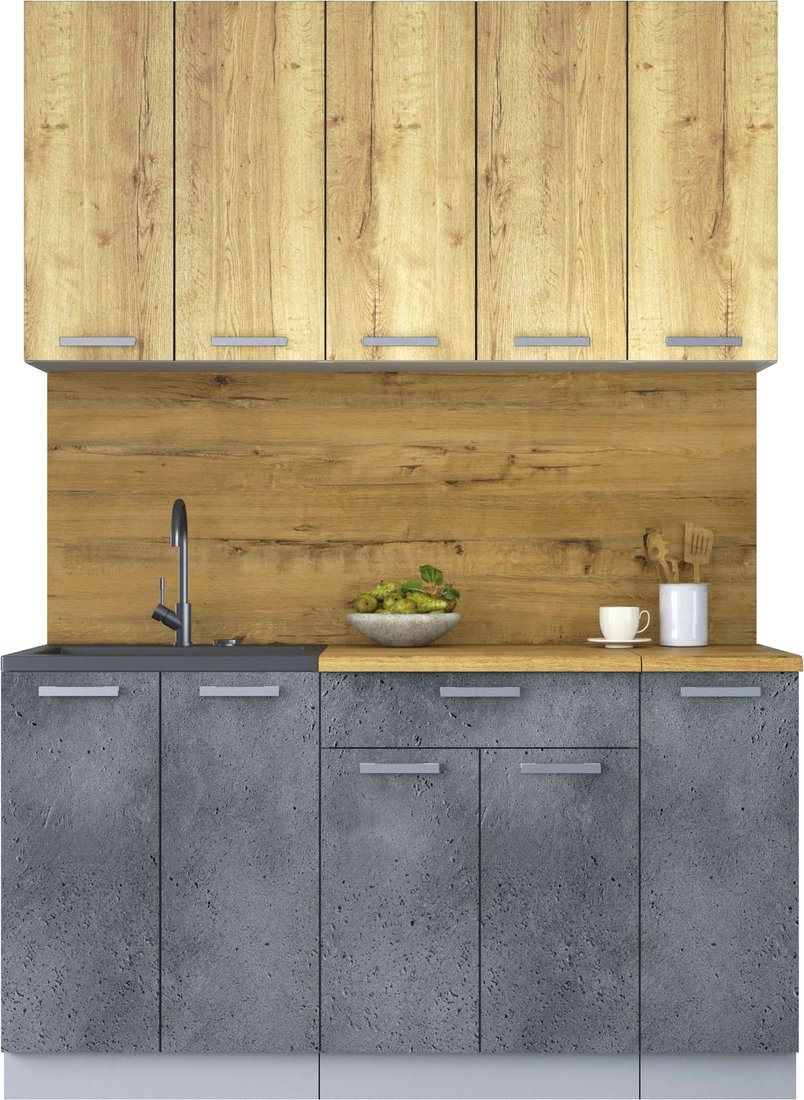 Готовая кухня Интерлиния Мила Лайт 1.5 (дуб золотой/бетон портленд/дуб бунратти)