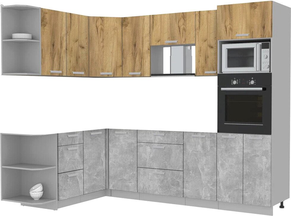 Готовая кухня Интерлиния Мила Лайт 1.68x2.6 левая без столешницы (дуб золотой/бетон)