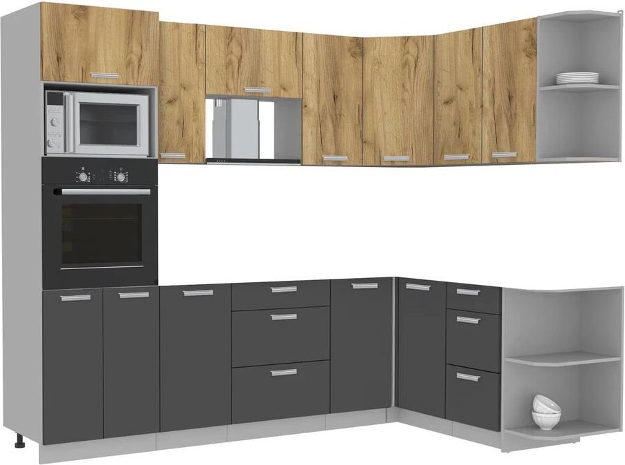 Готовая кухня Интерлиния Мила Лайт 1.68x2.6 правая без столешницы (дуб золотой/антрацит)