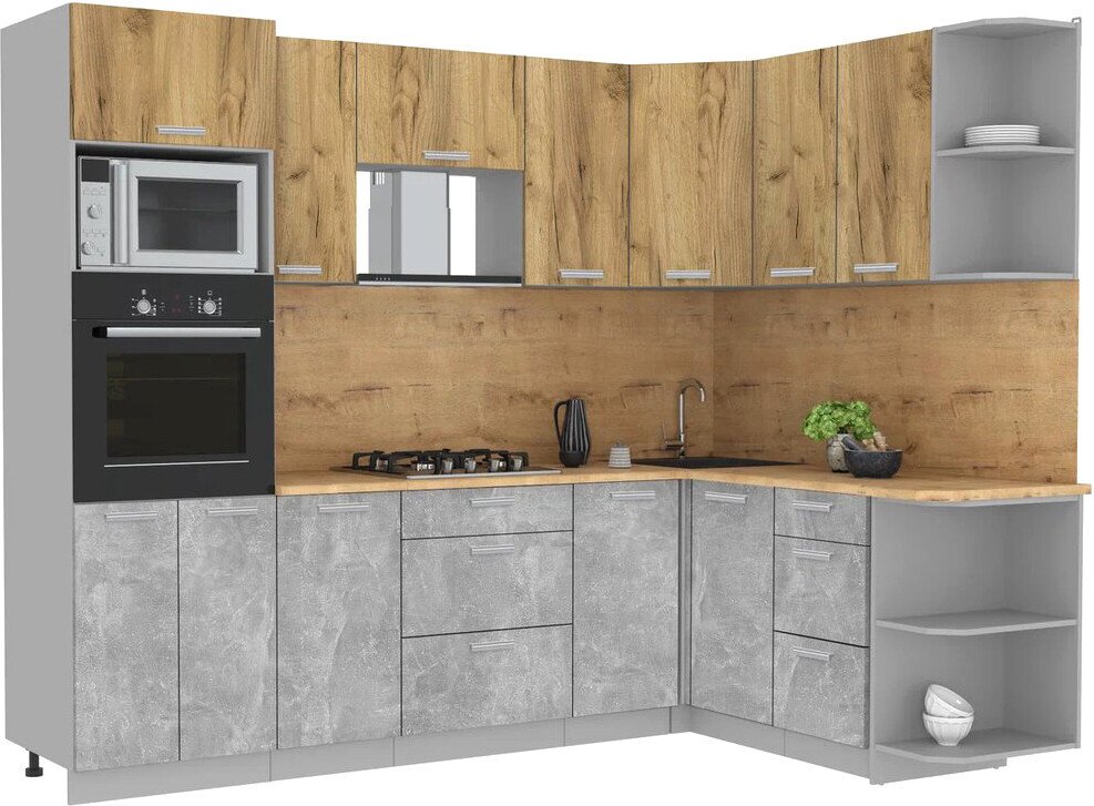 Готовая кухня Интерлиния Мила Лайт 1.68x2.6 правая (дуб золотой/бетон/дуб бунратти)
