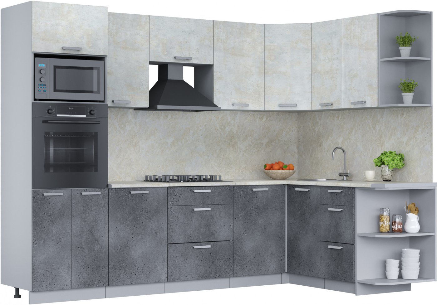 Готовая кухня Интерлиния Мила Лайт 1.68x2.8 правая (бетон лайт/бетон портленд/опал светлый)