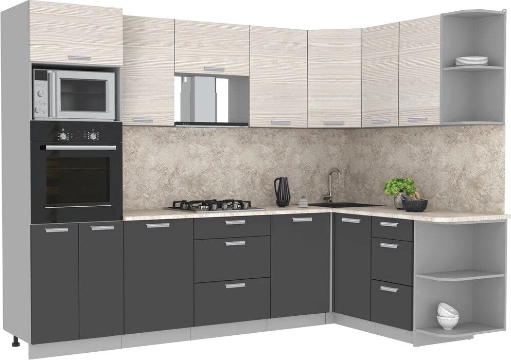 Готовая кухня Интерлиния Мила Лайт 1.68x2.8 правая (вудлайн кремовый/антрацит/малага)