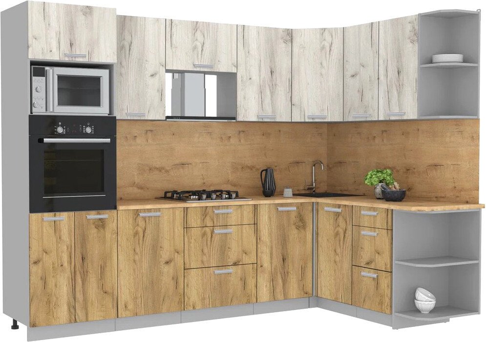Готовая кухня Интерлиния Мила Лайт 1.68x2.8 правая (дуб белый/дуб золотой/дуб бунратти)