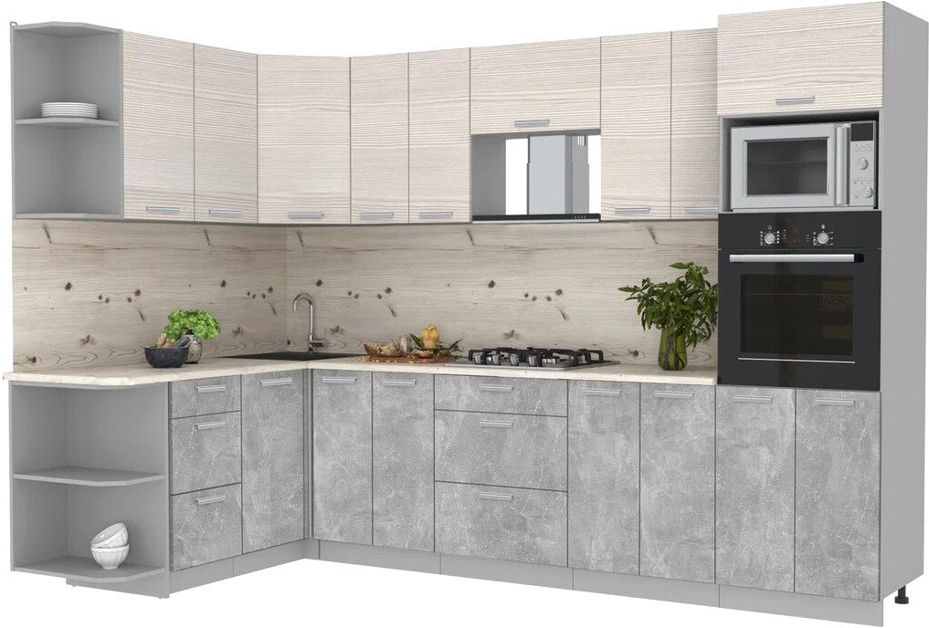 Готовая кухня Интерлиния Мила Лайт 1.68x3.0 левая (вудлайн кремовый/бетон/бискайская сосна)