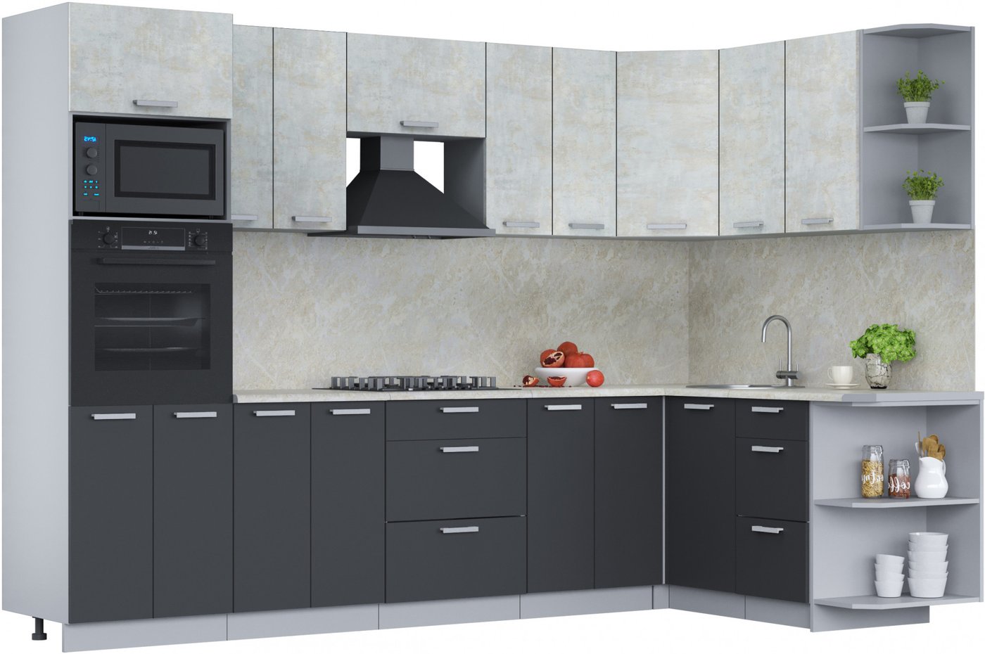 Готовая кухня Интерлиния Мила Лайт 1.68x3.0 правая (бетон лайт/антрацит/опал светлый)