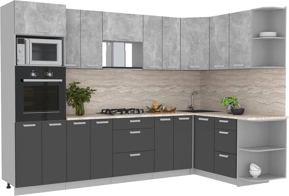 Готовая кухня Интерлиния Мила Лайт 1.68x3.0 правая (бетон/антрацит/травертин)