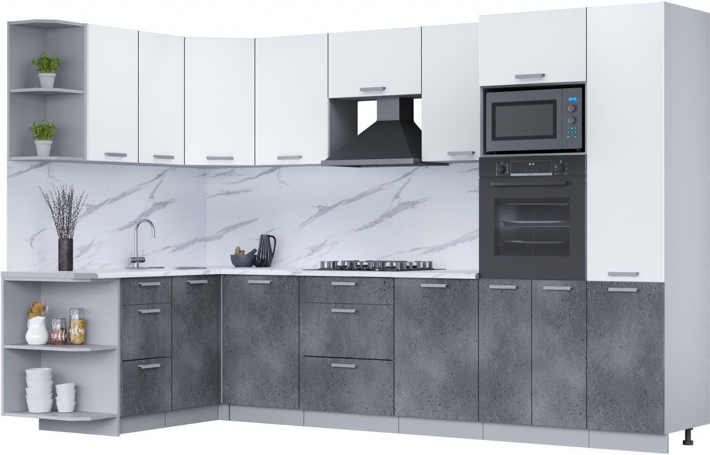 Готовая кухня Интерлиния Мила Лайт 1.68x3.2 левая (белый платинум/бетон портленд/белый гранит)