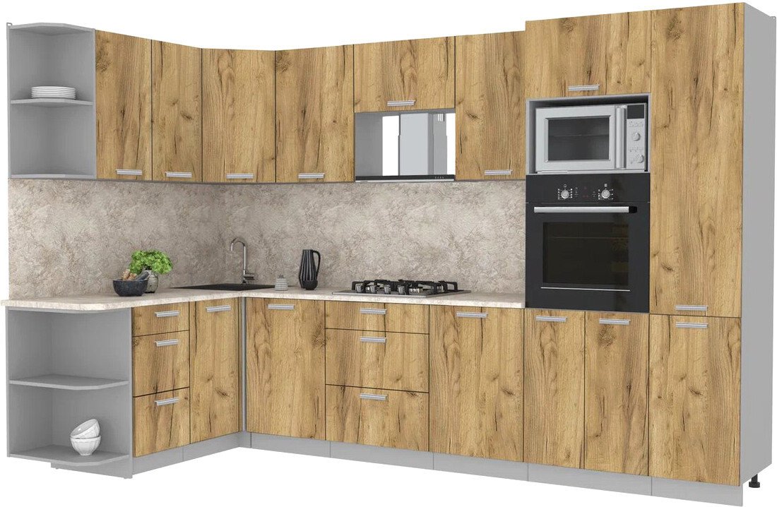 Готовая кухня Интерлиния Мила Лайт 1.68x3.2 левая (дуб золотой/дуб золотой/малага)