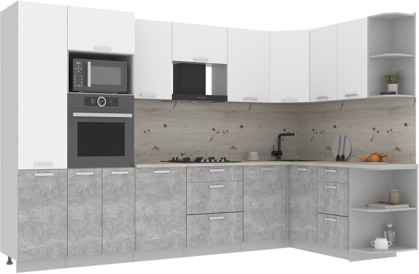 Готовая кухня Интерлиния Мила Лайт 1.68x3.2 правая (белый платинум/бетон/бискайская сосна)