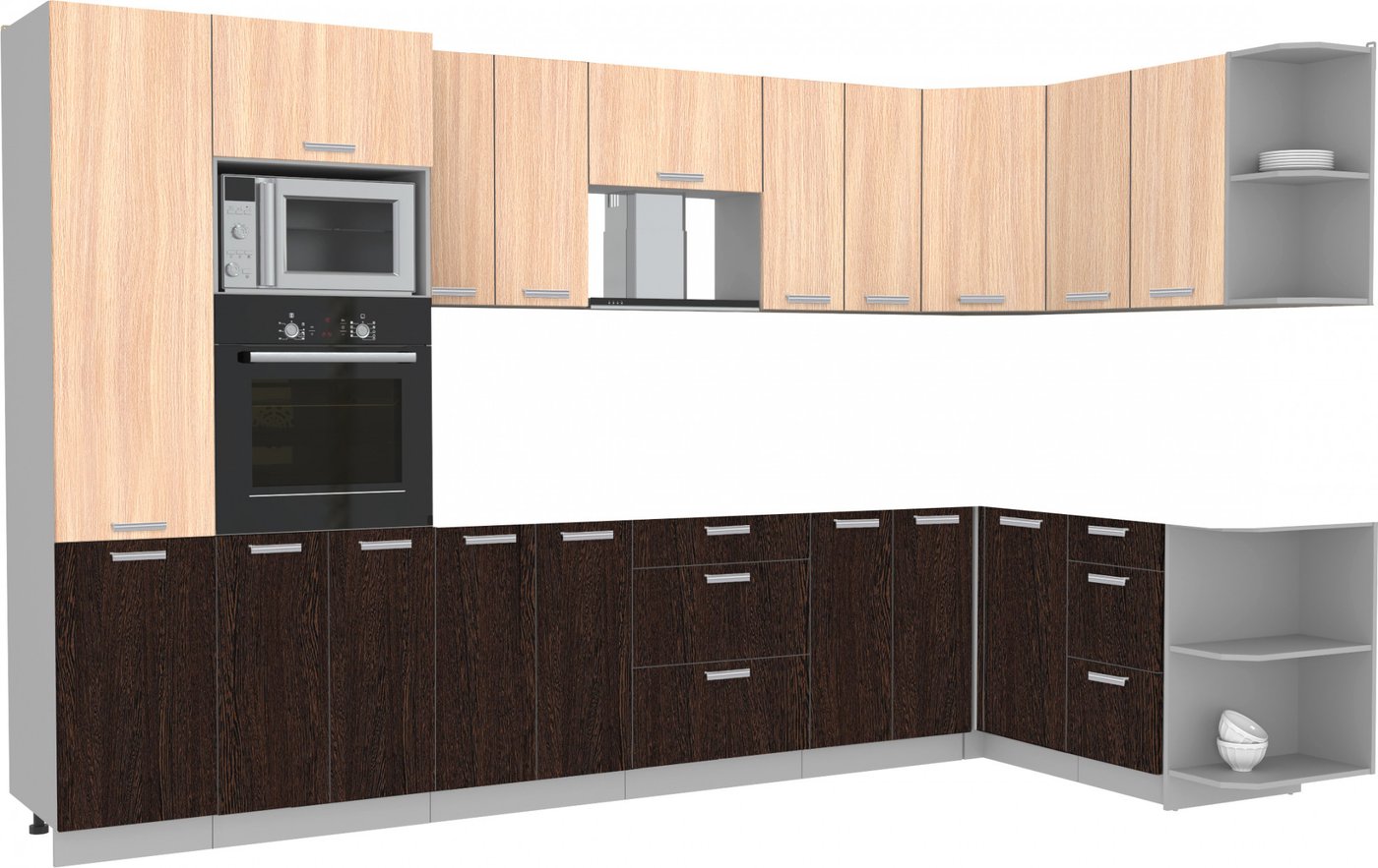 Готовая кухня Интерлиния Мила Лайт 1.68x3.4 правая без столешницы (дуб молочный/дуб венге)