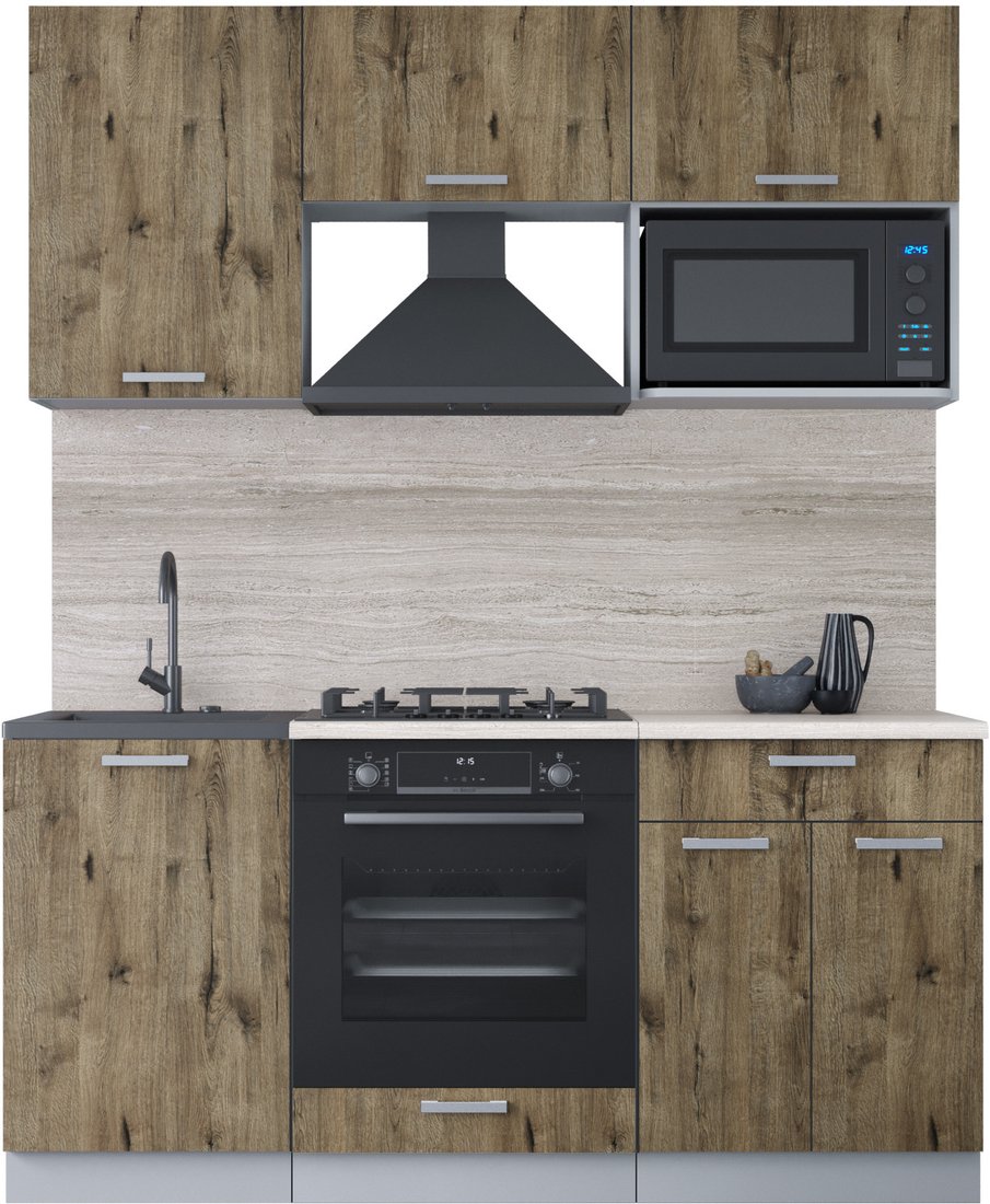 Готовая кухня Интерлиния Мила Лайт 1.7 ВТ (дуб веллингтон/дуб веллингтон/травертин серый)
