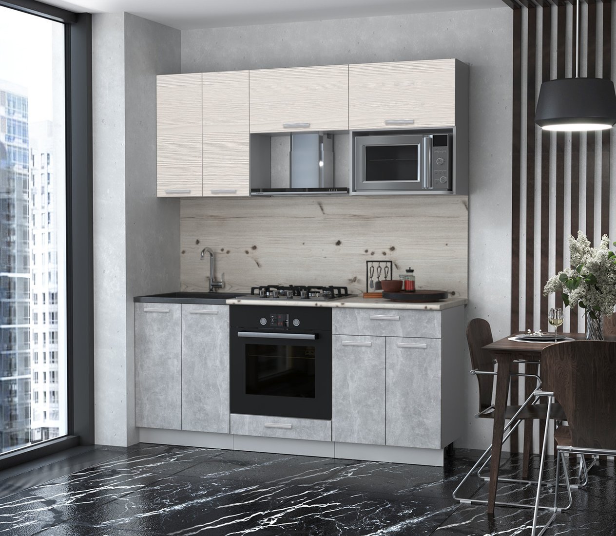 Готовая кухня Интерлиния Мила Лайт 1.8 ВТ (вудлайн кремовый/бетон/бискайская сосна)