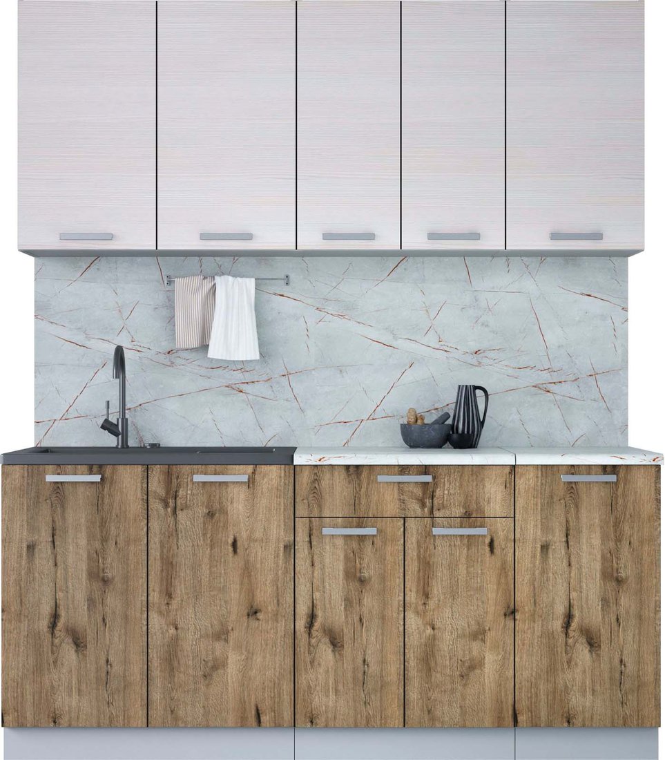 линейная, длина 180 см, ширина 60 см, каркас ЛДСП, фасад ЛДСП, установка мойки: накладная мойка, ширина шкафа под мойку 80 см