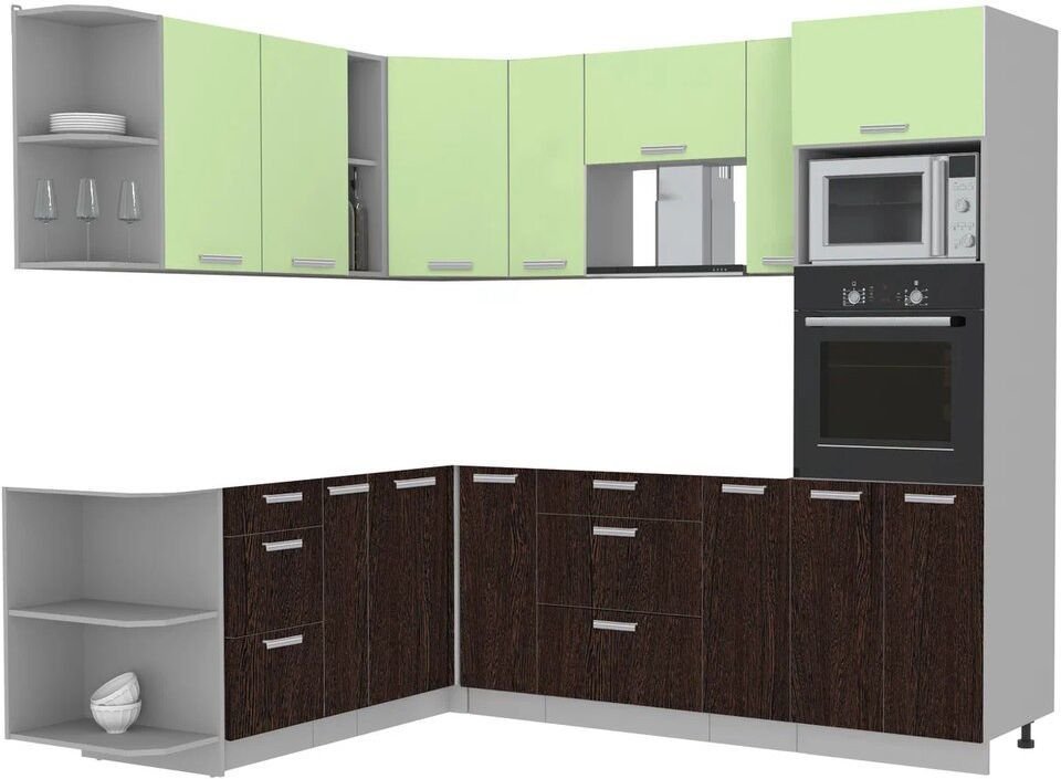 Готовая кухня Интерлиния Мила Лайт 1.88x2.4 левая без столешницы (салатовый/дуб венге)