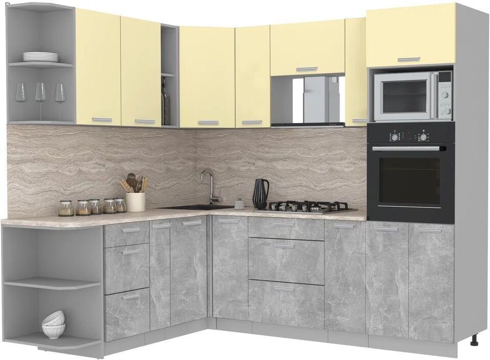 Готовая кухня Интерлиния Мила Лайт 1.88x2.4 левая (ваниль/бетон/травертин)