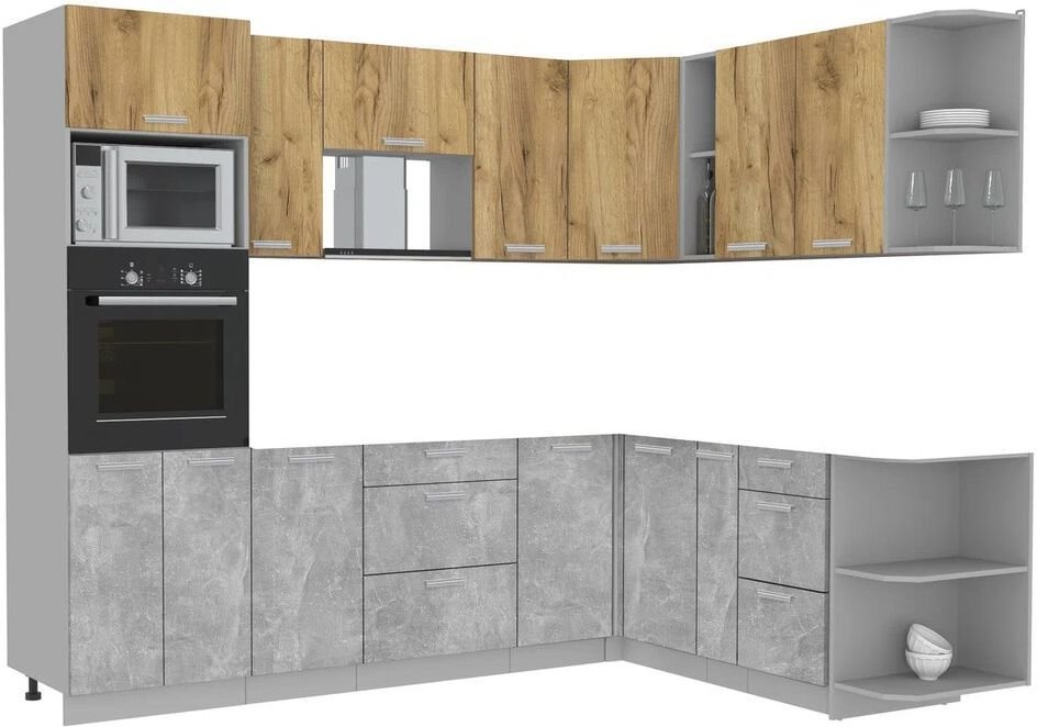 Готовая кухня Интерлиния Мила Лайт 1.88x2.6 правая без столешницы (дуб золотой/бетон)