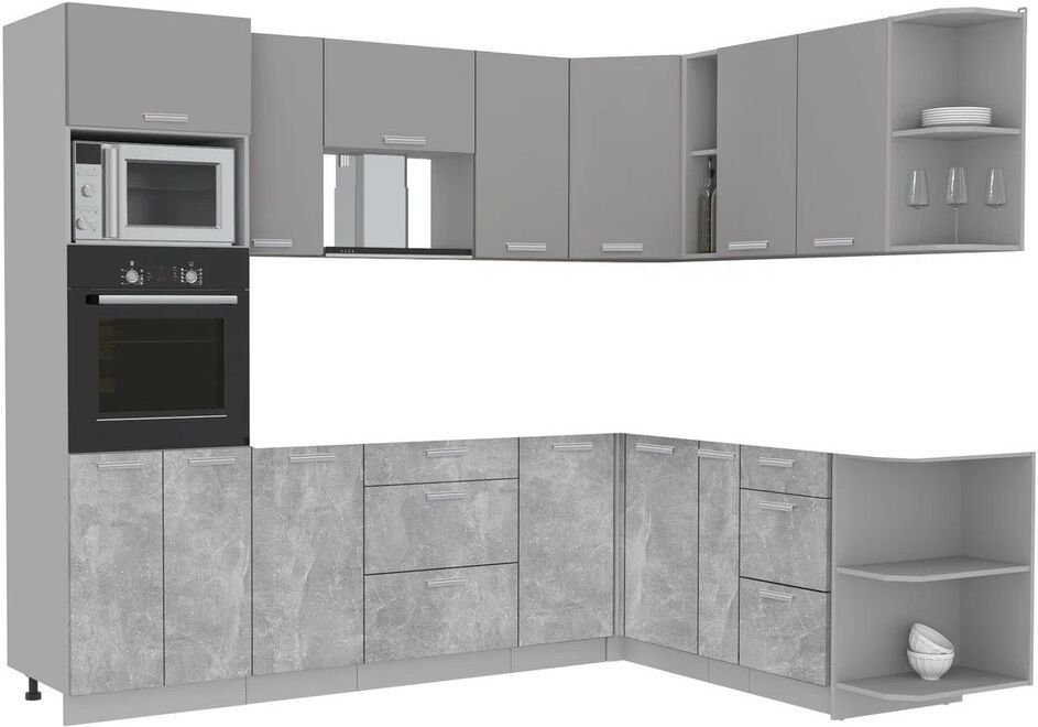 Готовая кухня Интерлиния Мила Лайт 1.88x2.6 правая без столешницы (серебристый/бетон)