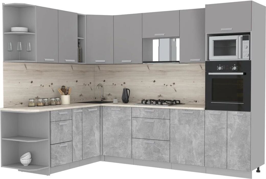 Готовая кухня Интерлиния Мила Лайт 1.88x2.8 левая (серебристый/бетон/бискайская сосна)