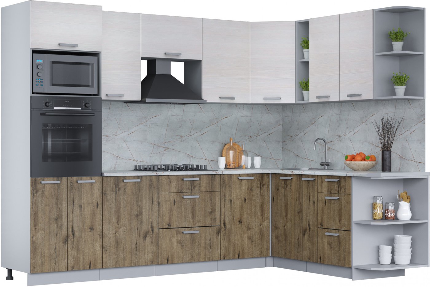 угловая, длина 280 см, ширина 188 см, каркас ЛДСП, фасад ЛДСП, установка мойки: врезная мойка, ширина шкафа под мойку 98 см
