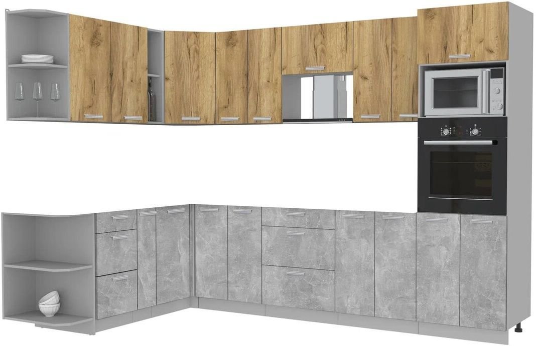 Готовая кухня Интерлиния Мила Лайт 1.88x3.0 левая без столешницы (дуб золотой/бетон)