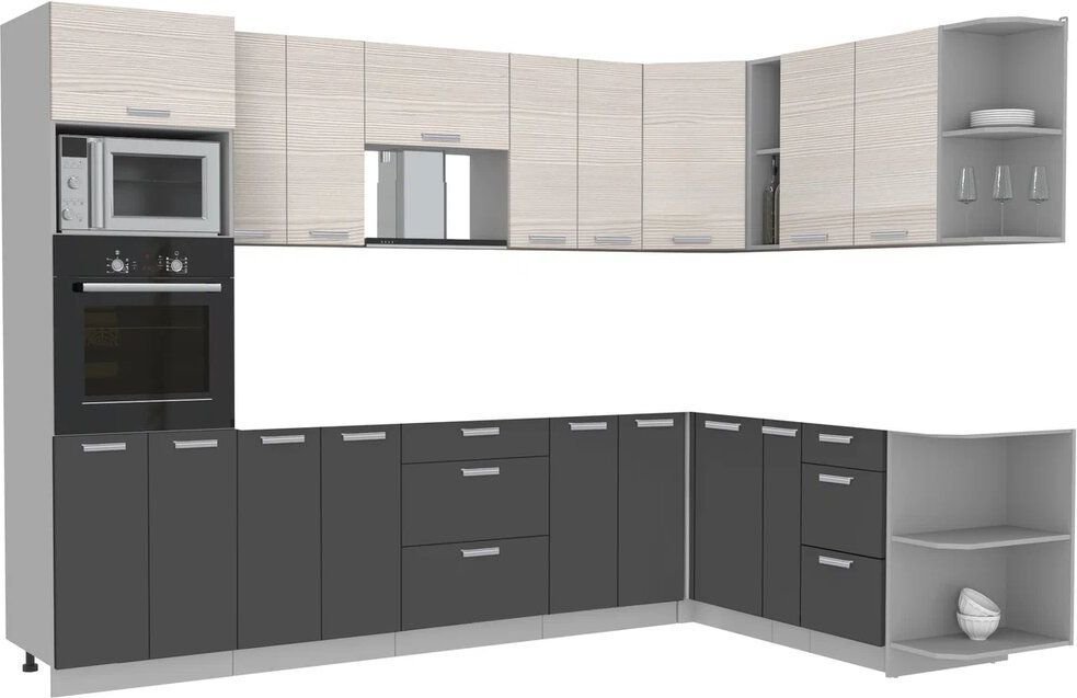 Готовая кухня Интерлиния Мила Лайт 1.88x3.0 правая без столешницы (вудлайн кремовый/антрацит)
