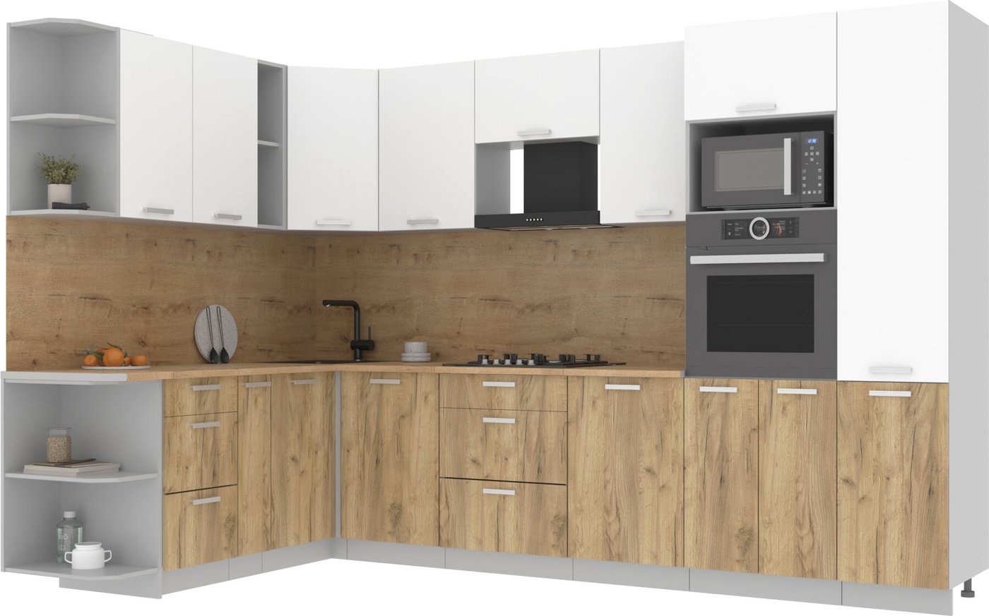 угловая, длина 320 см, ширина 188 см, каркас ЛДСП, фасад ЛДСП, установка мойки: врезная мойка, ширина шкафа под мойку 98 см