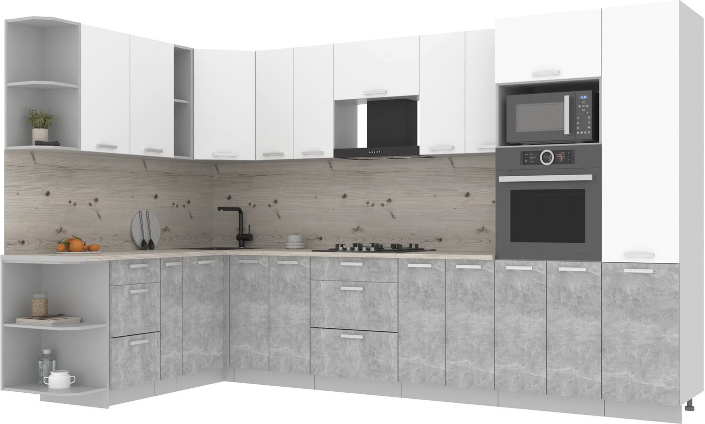 Готовая кухня Интерлиния Мила Лайт 1.88x3.4 левая (белый платинум/бетон/бискайская сосна)