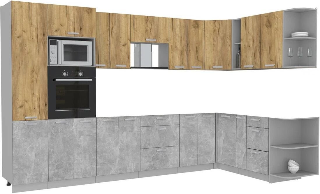 Готовая кухня Интерлиния Мила Лайт 1.88x3.4 правая без столешницы (дуб золотой/бетон)